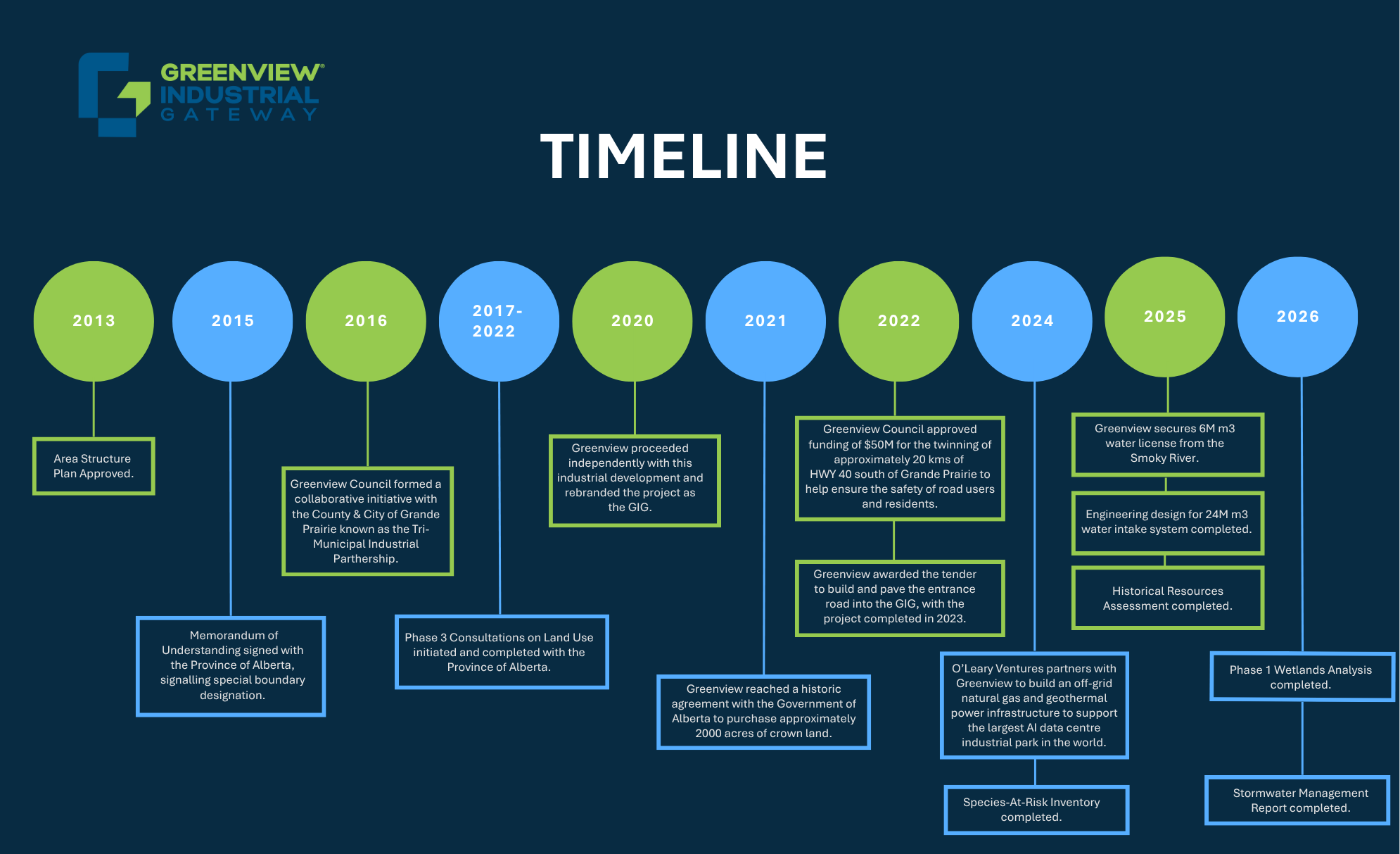 Over the years, significant investments in infrastructure and regulatory planning have shaped GIG into what it is today—a thriving industrial hub poised for long-term success. This initiative aligns with Greenview’s commitment to economic diversification, responsible development, and ensuring our communities benefit from industrial growth.