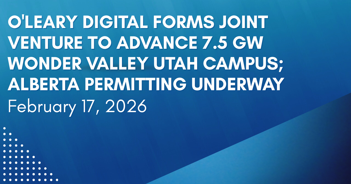 O’Leary Digital Forms Joint Venture to Advance 7.5 GW Wonder Valley Utah Campus; Alberta Permitting Underway